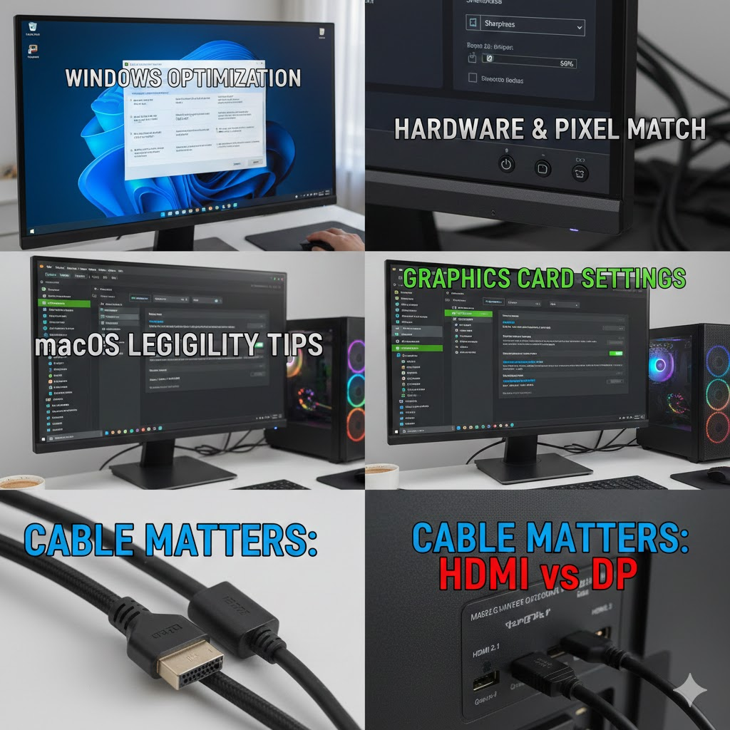 본 가이드에서는 윈도우와 맥 환경에서 모니터 선명도를 극대화하고, 가독성을 높여 눈의 건강을 지키는 5가지 핵심 전략을 소개합니다.