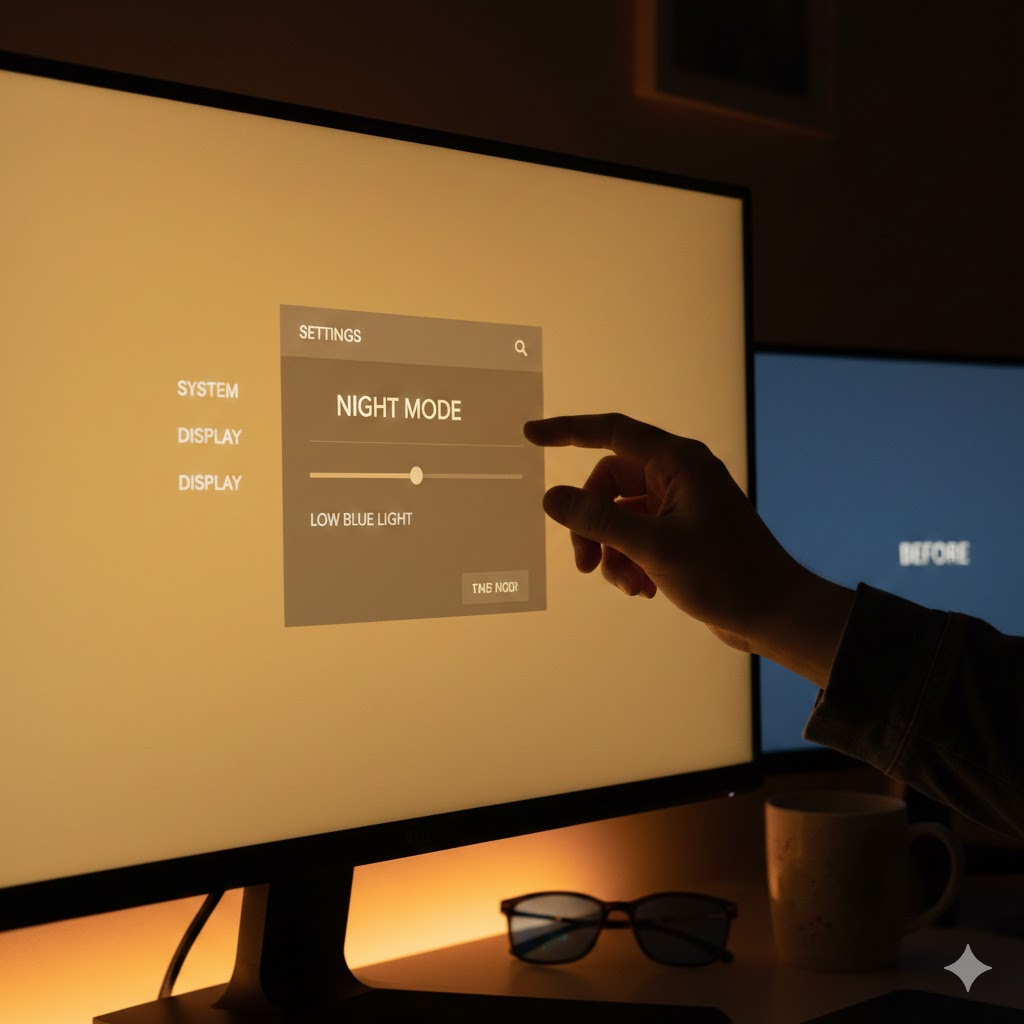 | 블루라이트 차단 | 야간 모드(Windows) + 따뜻한 색온도 | 시력 보호, 수면 질 향상 |