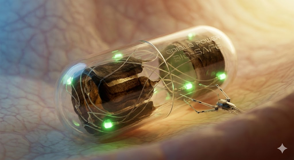멜라닌 배터리의 가장 놀라운 발전 중 하나는 바로 먹을 수 있는 형태의 에너지 저장 장치 개발입니다. 카네기 멜론 대학교의 연구팀을 필두로 전 세계 과학자들은 소화 기관 내부를 모니터링하는 장치에 멜라닌 배터리를 적용하고 있습니다. 입으로 섭취해도 전혀 무해한 이 배터리는 인체 내부에서 전력을 공급한 뒤 자연스럽게 배출되거나 흡수됩니다.